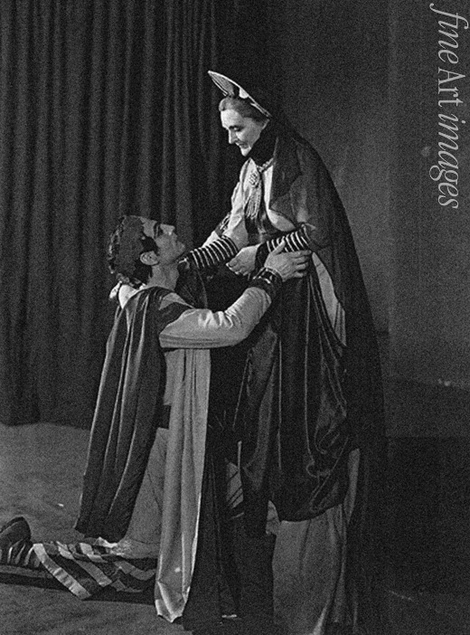 Sybil Thorndike (1882-1976) and Laurence Olivier (1907-1989) in Coriolanus by William Shakespeare, Old Vic Theatre, London