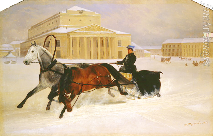 A horse drawn sledge at the Bolshoi Theatre in Moscow