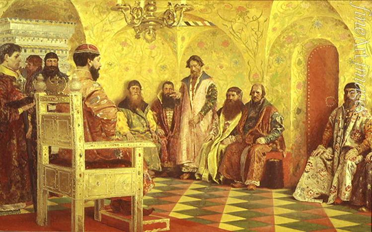 Title:Tsar Michael I Feodorovich at the session of the Boyar Duma