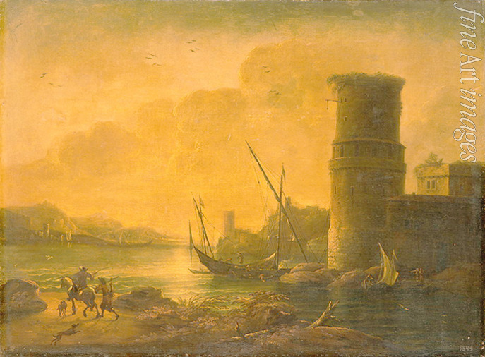 Summer, Nature, Seasons, Poetry, Summer landscape, Sunset, Clouds, Lighting, Sea, Sailing boat, Bay, Idyll, Cliffs, Evening, Italy, View, Boat, Barock, Castle, Ship, Romantic landscape, Coast, Rocky landscape, Italian landscape, Horseman, A sea landscape, South Italy, Tower