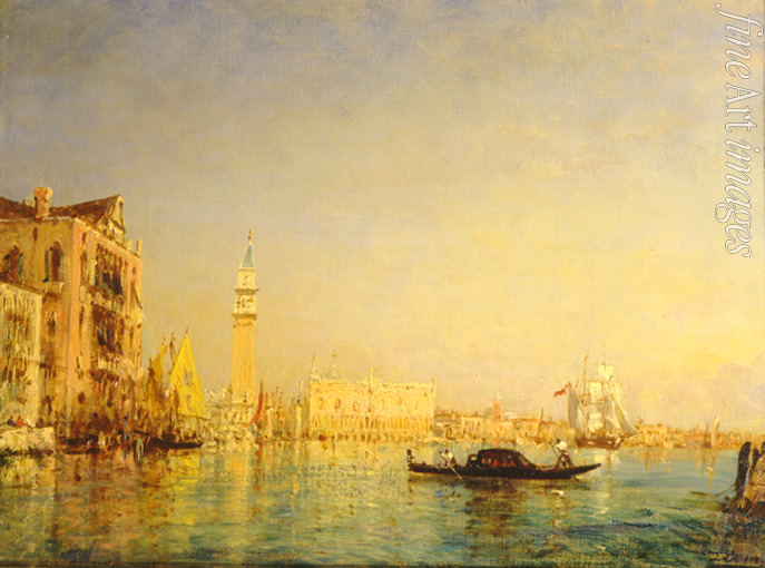 Keywords: Sun, Cityscape, Sun light, Noon, Time of Day, Lighting, Italy, View, Boats, Embankment, Venice, Venezia, Bay of Venice, Laguna Veneta, Canal Grande, Italian landscape, Gondola, Gondolier, Venetian Lagoon, Adriatic Sea, French painting, Basilica di San Marco, Saint Mark's Basilica, Grand Canal, San Marco, Basilica of Saint Mark