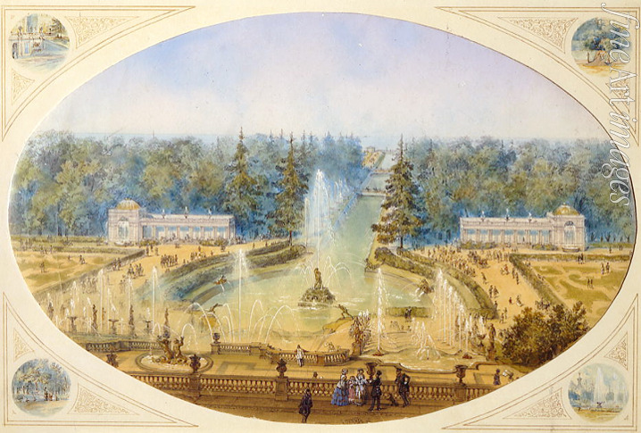 View of the Grand Cascade from terrace of the Grand Peterhof Palace