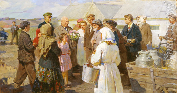 Keywords: Soviet political agitation art, Soviet Union, Propaganda, Political agitation, Kolkhoz, USSR, Leader of the Soviet Union, General Secretary, First Secretary of the Central Committee of the Communist Party, Leader, Soviet, Socialism, Socialist realism, Socrealism, Nikita Khrushchev, Nikita Sergeyevich Khrushchev, Khrushchev, Khrushchyov, Politican, Collective farming