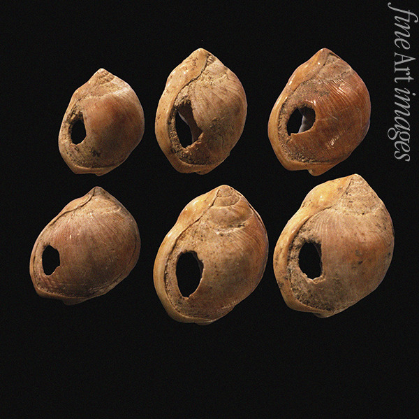 Perforated shell beads from Blombos Cave, South Africa. The oldest artifact of mankind