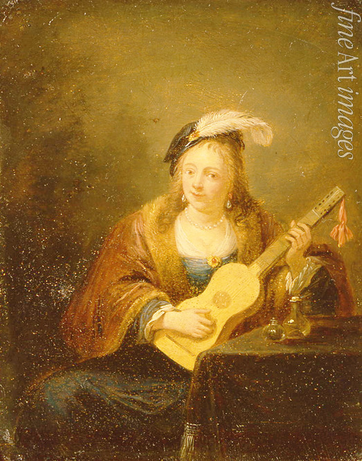 Keywords: Music, Lady, Hat, Music instruments, Fine, Elegant, Barock, Musician, Woman's portrait, Play music, Female portrait, At the Table, Plume, Woman with a guitar, Guitar player, Guitar, Musical instruments, Musical instrument, Plume hat, Guitarist