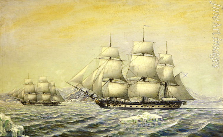 Sea, Sea landscape, Sailing boat, Yacht, Maritime painting, Russian fleet, Sailing ship, Corvette, Explorer, Imperial Russian Navy, Expedition, Continents, Antarctic Circle, Antarctica, Antarctic mainland, Antarctic coast, Explorers of Antarctica, Russian polar explorers, Antarctic Ocean, South Pole, Corvette Vostok, Support vessel, Bellingshausen, Lasarev, Polar exploration, Vostok