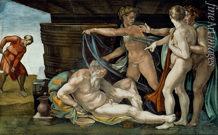 The Drunkenness of Noah. Sistine Chapel ceiling in the Vatican