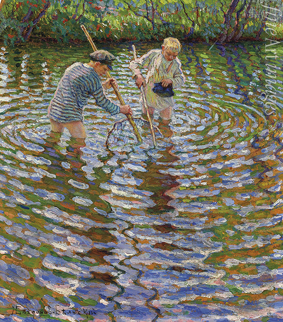 Country side, Nature, Poetry, River, Idyll, Water, Banks, Russia, Fishing, Youth, Children, Child, Fishermen, Coast, Boy, Boyish face, Innocence, Weekday, Genre scene, River landscape, Childhood, Angler, Angling