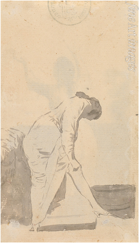 Young man stretching his stocking (from the Madrid Album)
