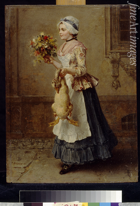 Girl, Luck, Tenderness, Maid, Handmaid, Domestics, Biedermeier, Coif, Bonnet, Interior, Family life, Weekday, Maidservant, Genre scene, Birthday