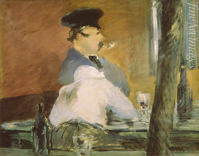 Keywords: France, Melancholy, Café, Bar, Smoker, Loneliness, Glass, Wine glass, Drinking, Host, Wine, Tavern, At the bar, Wine bottle, Impressionism, Impressionists