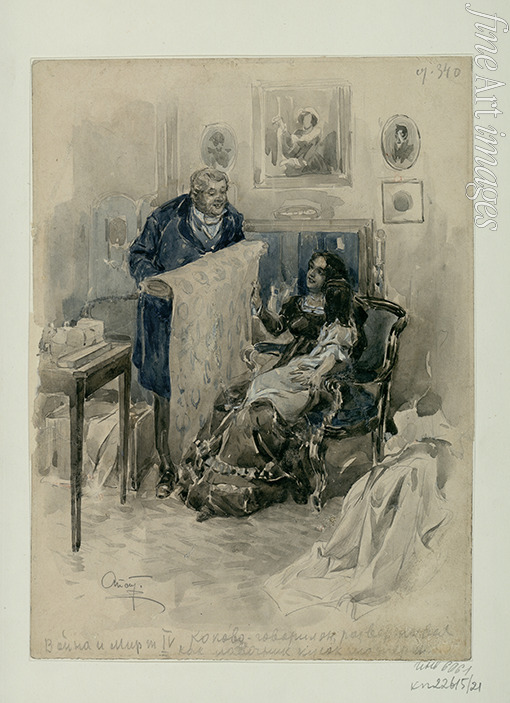 Apsit Alexander Petrovich - Pierre in the family. Epilogue. Illustration for the novel War and Peace by Leo Tolstoy