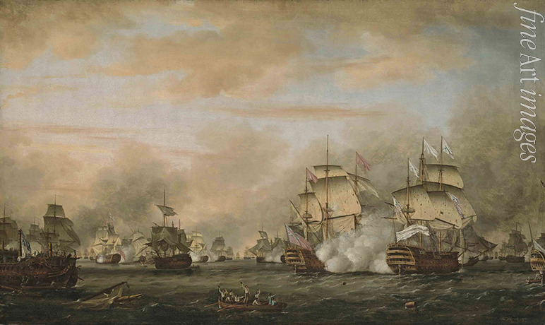 Whitcombe Thomas - The Battle of the Saintes, 12 April 1782.  HMS Barfleur attacking the French flagship Ville de Paris