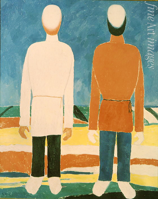 Decorative, Country side, Colourfulness, Field, Russia, Suprematism, Abstract, Peasants, Constructivism, Russian Avant-garde, Harvester, Figure, Two male figures, Red shirt, Cubofuturism, Cubo-Futurism