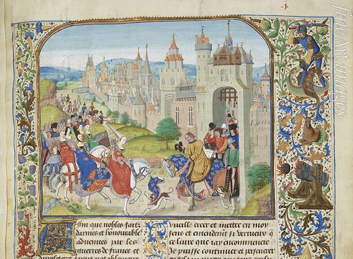 Liédet Loyset - Isabella of France welcomed by her brother Charles IV to Paris (Miniature from the Grandes Chroniques de France by Jean Froissar