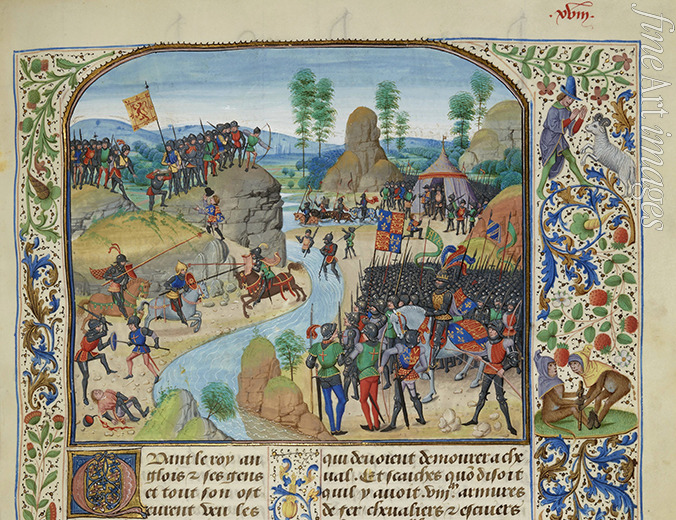 Anglo-Scottish War: the English crossing the Tyne. (Miniature from the Grandes Chroniques de France by Jean Froissart)