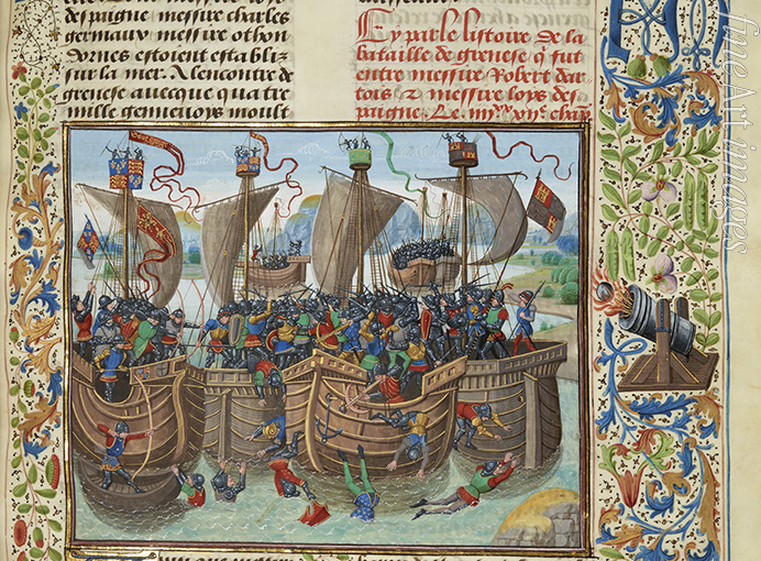 The naval Battle of Guernsey, 1342 (Miniature from the Grandes Chroniques de France by Jean Froissart)