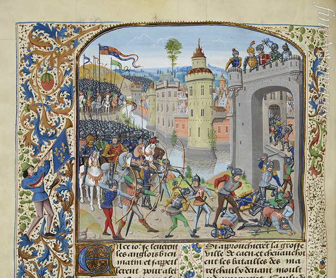 Middle Ages, Manuscript, Manuscript illumination, Medieval, Illuminated manuscript, Medieval Illuminated Letter, Illuminated art, Jean Froissart, Froissart, Miniature, Hundred Years' War, Battle of Caen