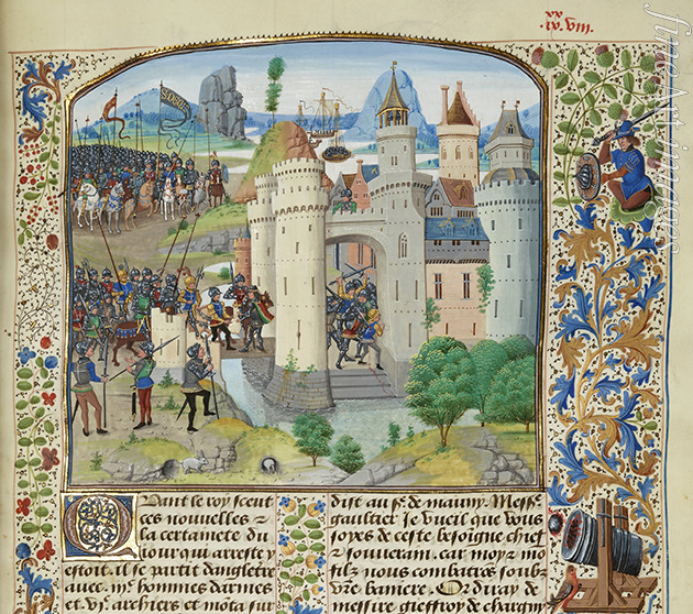 The French attempt to recapture Calais from England, 1350 (Miniature from the Grandes Chroniques de France by Jean Froissart)