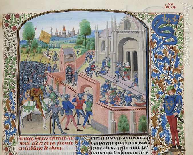 Taking of the Ename Abbey, 1381 (Miniature from the Grandes Chroniques de France by Jean Froissart)