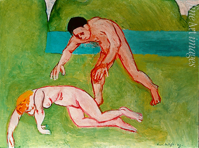 Decorative, Fauvism, Nude, Nudity, Colourfulness, Nymph, Satyr, Greek Mythologie, Ancient Greek, Aesop, Spirit of wood, Modern, Nymph and Satyr