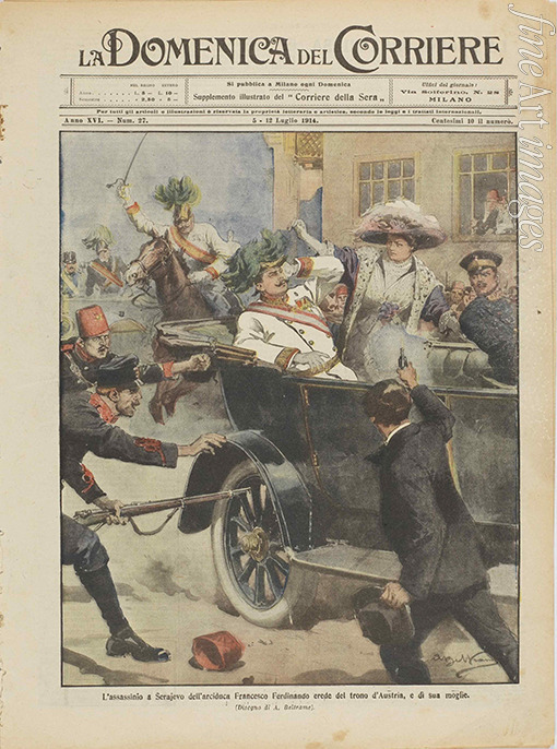 Beltrame Achille - The Assassination of Archduke Franz Ferdinand of Austria and his wife in Sarajevo, 28th June 1914. (From La Domenica del Corrier
