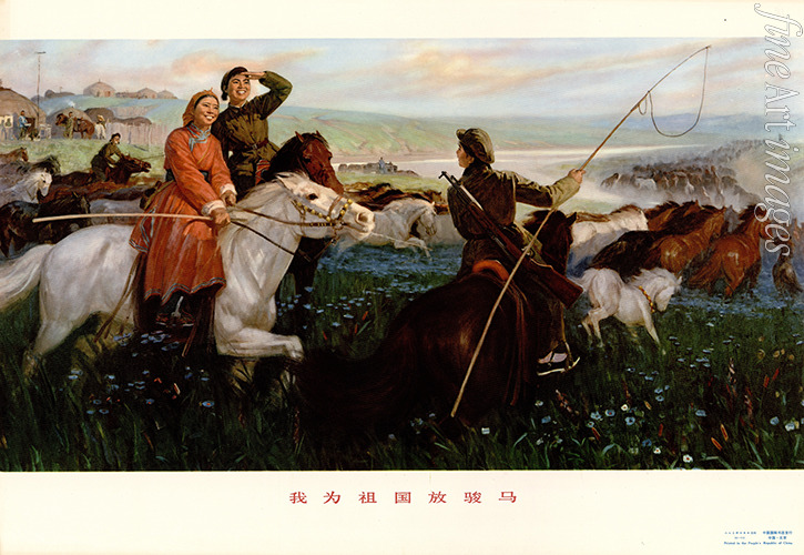Keywords: Horses, Propaganda, Political Poster, Political agitation, China, Collective farming, Mao Zedong, Mao, Mao Tse-tung, Cultural revolution, Chairman Mao, People's Republic of China, Maoism, Mao Tsetung, People's commune, Inner Mongolia, Inner Mongolia Autonomous Region