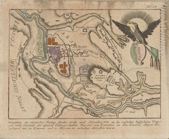 Title:Plan of the siege of the Turkish fortress of Bender by the Russian army in November 1789
