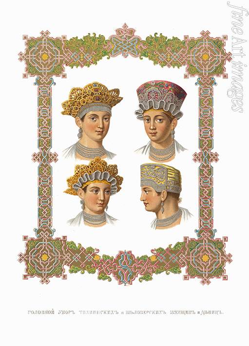 Girls and women headgear of Tikhvin and Belozersk. From the Antiquities of the Russian State
