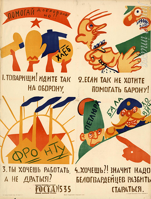 Keywords: Symbol, Peasant, Russia, Soviet political agitation art, Civil war, Proletariat, Revolution, Russian Revolution, People, Poland, Worker, Anxiety, Red Army, Russian History, Power, Propaganda, Poster, Political Poster, Ukraine, Proletarian, National uprising, October revolution, Agitation, Russian Civil War, Socialist realism, White Army, Red Guard, White Guard, Mayakovsky, 1917, Polish-Soviet War, Intervention, ROSTA, Agitprop, ROSTA Window