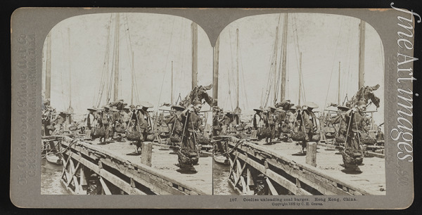 Coolies unloading coal barges, Hong Kong