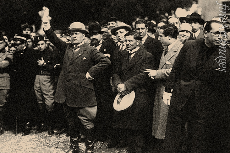 Benito Mussolini, between the members of the Fascist Party, shortly after the March on Rome