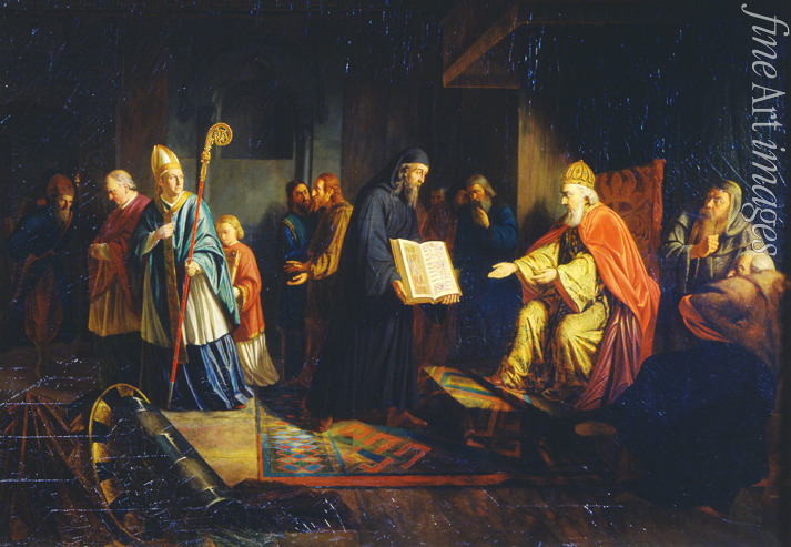 Title:Vladimir Svyatoslavich the Great of Kiev choosing the religion in the year 987