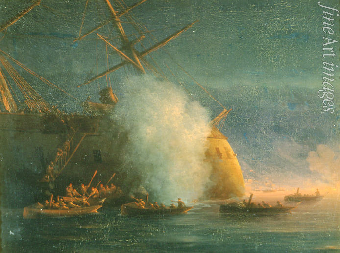 Aivazovsky Ivan Konstantinovich - Attack of the Russian Cutters on the Turkish steam battleship Assari Shevket in the Black Sea on 12 August 1877