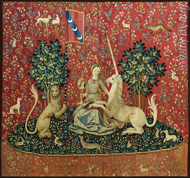 Keywords: Tapestry, Allegory, Vision, Five Senses, Senses, Eyesight, Sight, Unicorn, Visual perception, La Dame à la licorne, Tapestries, Woven textile art