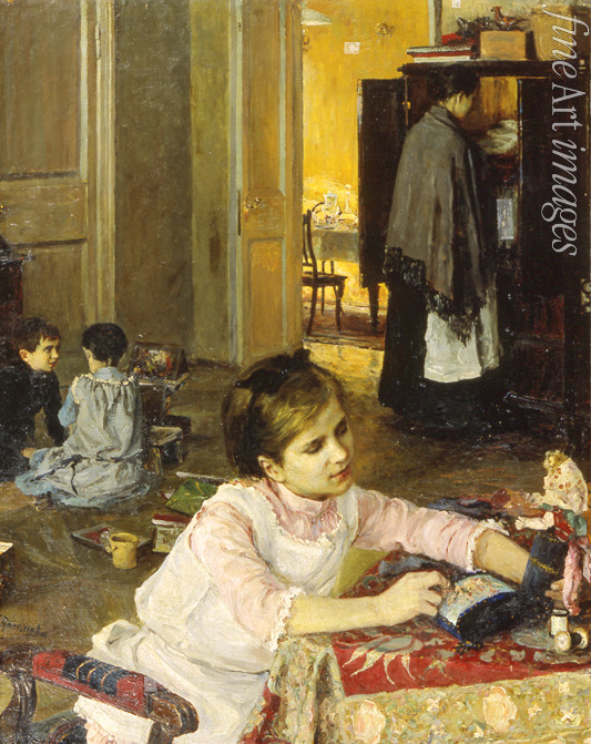 Girl, Idyll, Russia, Youth, Interior, Family life, Children, Child, Family, Play, Mother, Women's art, Boy, Boyish face, Innocence, Weekday, Home, Family scene, Genre scene, Childhood, Domestic life, Peace, In the room