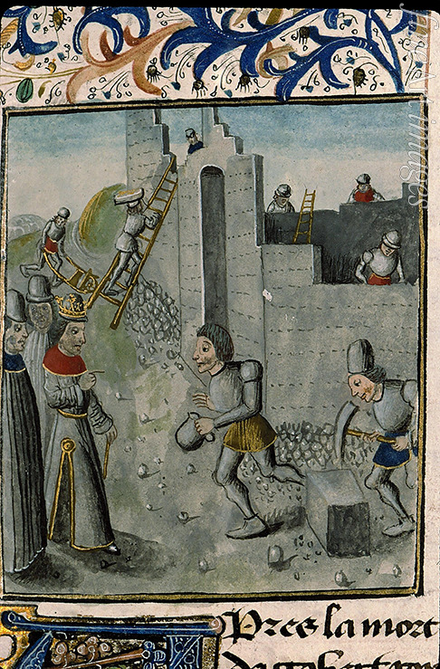 Sigebert III ordering the reconstruction of a city in Austrasia. From Annales historiae illustrium principum Hannoniae