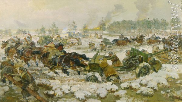 Keywords: Russia, Soviet political agitation art, Propaganda, Artillery, Agitation, Socialism, Socialist realism, Socrealism, World War II, Second World War, Great Patriotic War, 1943, Demyansk Pocket, Battle of Demyansk, Demyansk