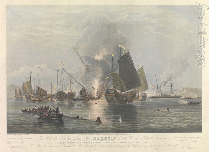 The iron steam ship Nemesis destroying the Chinese War Junks in Anson's Bay, 7 January 1841