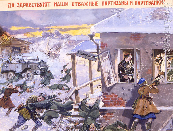 Keywords: Soviet political agitation art, Soviet Union, Propaganda, Poster, Political Poster, Political agitation, Soviet, Socialist realism, Socrealism, Partisan, Partisans, Second World War, Resistance, Great Patriotic War