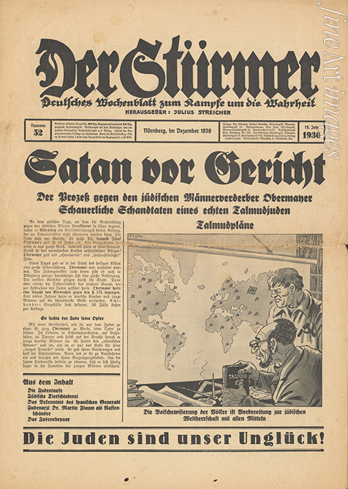 The Plans of the Talmud. The Jews Are Our Calamity. (Der Stürmer (The Striker), newspaper by Julius Streicher)