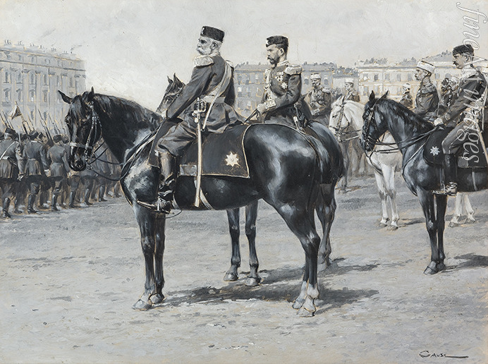 Gause Wilhelm - Emperor Franz Joseph I of Austria with Tsar Nicholas II of Russia and entourage at the parade in St. Petersburg 1897
