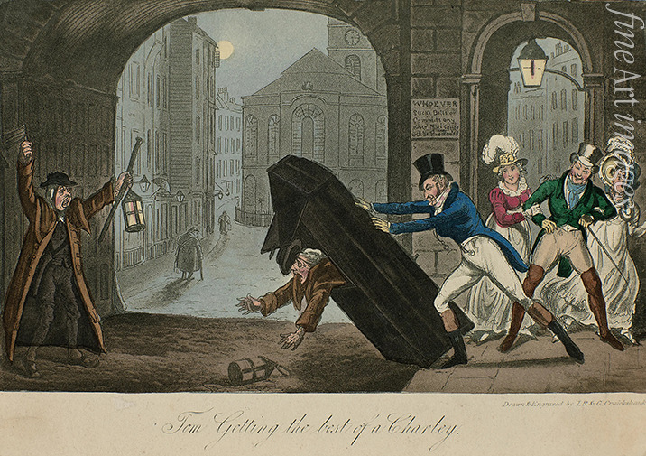 Tom Getting the best of a Charley. Illustration to Life in London by Pierce Egan