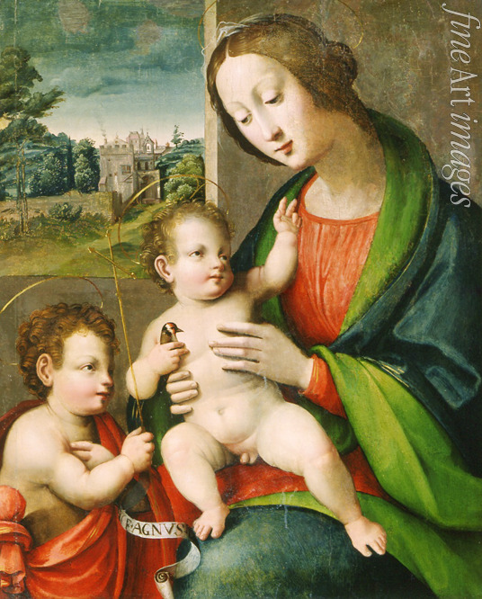 Keywords: Madonna, Virgin, Bible, Renaissance, New Testament, Virgin and child, Holy Family, Italian landscape, Boy, Mary, Christ child, Mother of God, Virgin Mary, John the Baptist, Saint John the Baptist, Madonna del Cardellino, Virgin with a Goldfinch