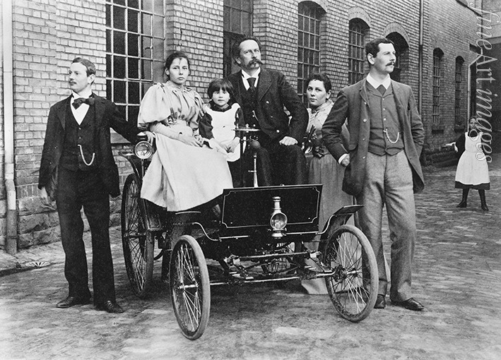 Carl Benz with his family at his Benz Velo in the Mannheim factory yard