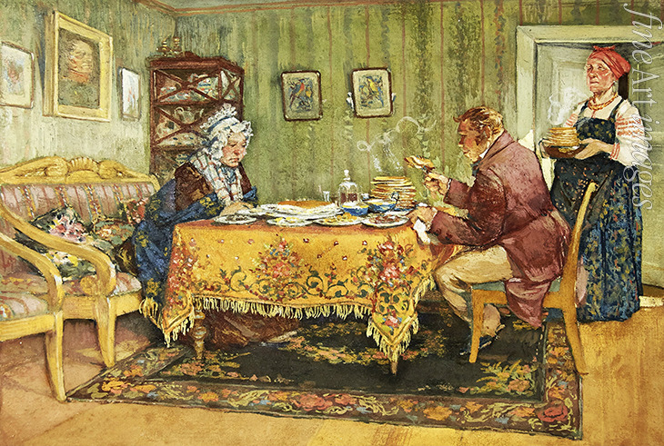 Chichikov at the house of Korobochka. Illustration for the novel Dead Souls by N. Gogol