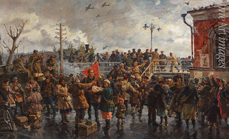 Keywords: Cityscape, Russia, Soviet political agitation art, Town, People, War, Red Army, Military service, Soviet Union, Propaganda, Political agitation, USSR, Patriotic War, Soviet, Maneuvers, Troops, Socialist realism, Socrealism, Soviet-German War, World War II, Second World War