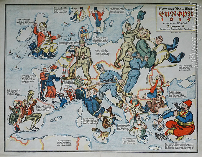 Title:Summer Show over Europe 1915. European satirical map