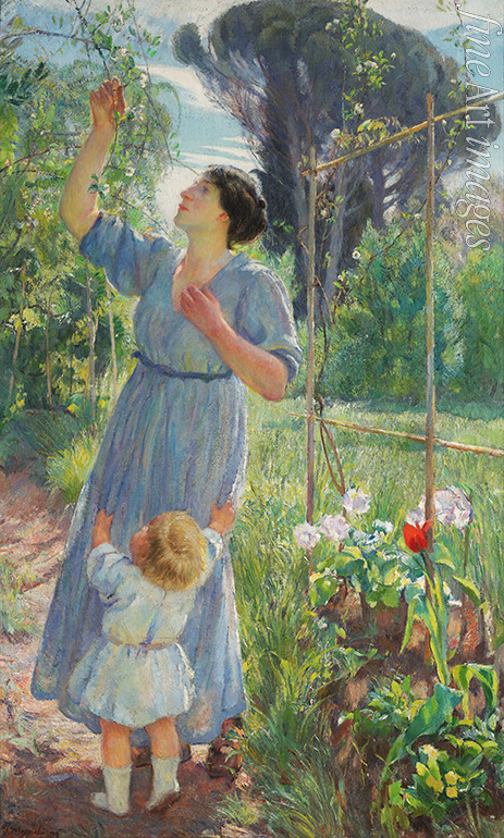 Flowers, Country side, Seasons, Poetry, Sun light, Trees, Lady, Girl, Garden, Spring, Blooming, Motherhood, Spring landscape, Child, Mother, Innocence, Childhood, Young Girl
