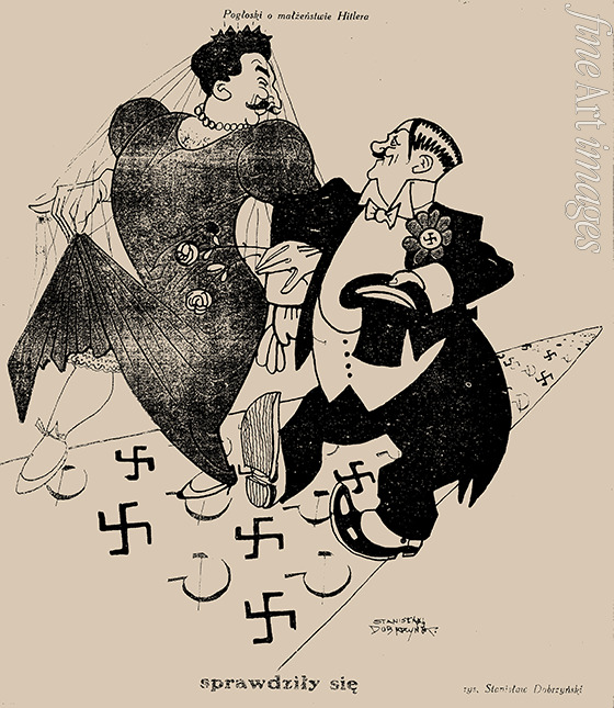 Rumors about Hitler's marriage have proven to be true. Cartoon from the satirical magazine Szpilki (Pins)